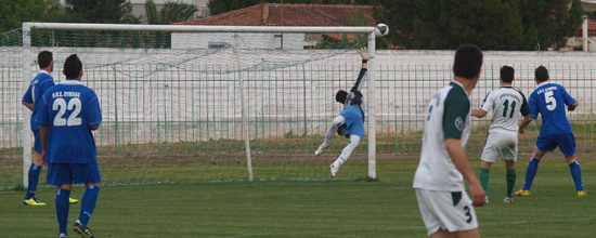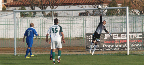 Ο Βασίλης Ανέστης των Λουκισίων και πρώην παίχτης του Ηρακλή προσπάθησε να βάλει γκολ στον Τόλιο με ψαλιδάκι αλλά δεν τα καταφερε.