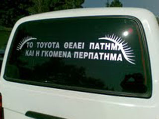 Eίναι γνωστοί οι "φιλόσοφοι του δρόμου" και οι ατάκες που έχουν γράψει πάνω στα φορτηγάκια τους μάρκας TOYOTA έχουν γράψει ιστορία. Πιο κλασσική ατάκα ίσως είναι η εικονιζόμενη στη δεξιά φωτογραφία.