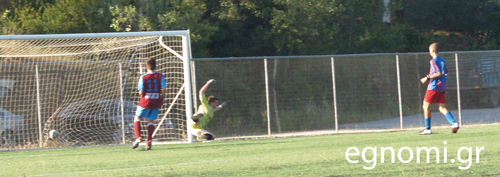 Το μοναδικό γκολ που σημειώθηκε σε ένα, κατά τα άλλα, αρκετά καλό ματς από τους παίχτες και των δυο ομάδων, σημειώθηκε πέντε λεπτά πριν λήξει το πρώτο ημίχρονο, με σουτ από μακριά και πλάγια του Φ. Βλάχου