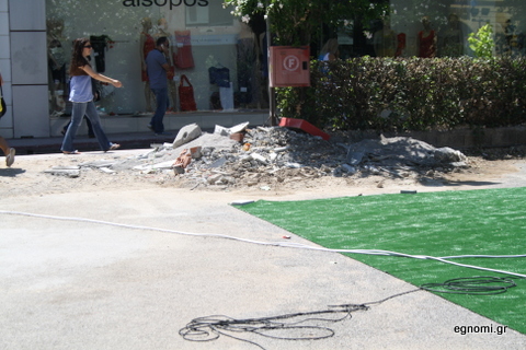 Μπορεί τα αμάξια να έφυγαν από το πάρκινγκ πρώην Σολογιάννη για να μπει η πισίνα και τα σχετικά, αλλά ένας χριστιανός δεν βρέθηκε να μαζέψει και τα μπάζα που ασχημαίνουν το χώρο εδώ και πολλούς μήνες.