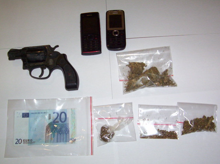 · Δύο (2) κινητά τηλέφωνα και ένα (1) χαρτονόμισμα των (20) ευρώ αμφιβόλου γνησιότητας, το οποίο θα σταλεί για εργαστηριακή εξέταση.