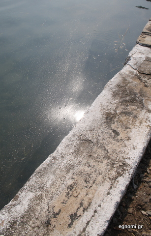 Σίγουρα κάτι δεν πάει καλά, αφού ο πυθμένας πρασινίζει (φωτό πάνω), ενώ μία περίεργη κρούστα σχηματίζεται στην επιφάνεια της θάλασσας ( φωτό κάτω), που παραπέμπει σε βρώμικα νερά.