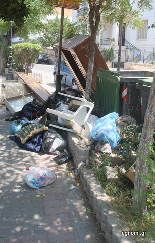 Κάποιος συμπολίτης μας έκανε ανακαίνιση και έκρινε σκόπιμο να πετάξει όλη αυτή την παλιατζαρία δίπλα στους κάδους απορριμμάτων, ενώ είναι γνωστό ότι αυτού του είδους τα απορρίμματα δεν μπορούν να μεταφερθούν από τα απορριμματοφόρα οχήματα του Δήμου, αλλά απαιτούνται φορτηγά για την μεταφορά τους.
