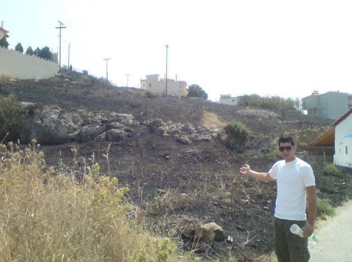 Στη φωτό, ο κάτοικος της περιοχής Κώστας Λειβαδίτης δείχνει το σημείο όπου συνέβη η φωτιά.