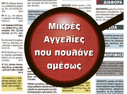 Πολλές αγγελίες με μεγάλες ευκαιρίες θα περιλαμβάνει η έκδοση της Ευβοϊκής Γνώμης στις 31 Αυγούστου.