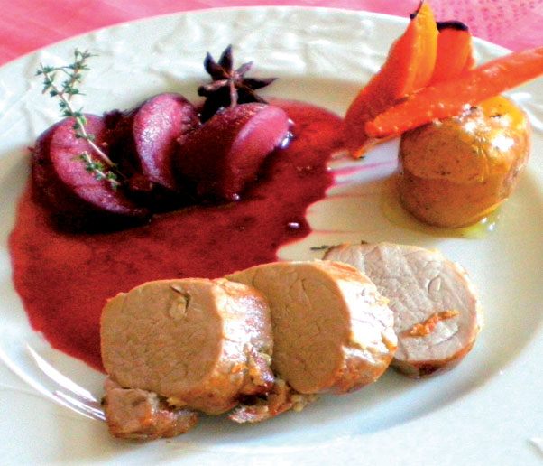 Χοιρινό φιλέτο με φρέσκα δαμάσκηνα