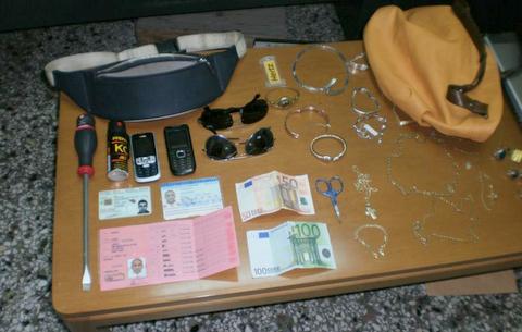 Οι δράστες συνελήφθησαν επιβαίνοντες σε ΙΧ αυτοκίνητο (φωτό), μέσα στο οποίο βρέθηκαν και κατασχέθηκαν πλήθος κοσμημάτων, διαρρηκτικά εργαλεία, ένας φορητός Η/Υ, ένα σπρέι πιπεριού, μία γυναικεία τσάντα, δύο κινητά τηλέφωνα και το χρηματικό ποσό των 205 ευρώ.