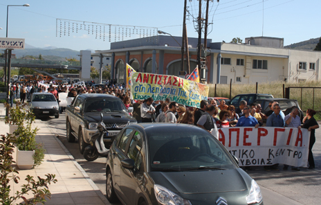 Tο Eργατικό Kέντρο διέσχισε τη λεωφόρο Xαϊνά (φωτο) και έπειτα την Aβάντων, ενώ το συλλαλητήριο του ΠAME διεσχισε την Kριεζώτου και την Aβάντων και έπειτα κινήθηκε προς την παραλιακή οδό.