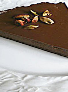 Ανακατεύω τα μπισκότα με το βούτυρο και τα στρώνω πατώντας τα καλά σε στρογγυλή ταρτιέρα διαμέτρου 22 εκατ. Ψήνω για 10 λεπτά σε προθερμασμένο φούρνο στους 180ο βαθμούς και αφήνω τη βάση να κρυώσει εντελώς. Στο μεταξύ ζεσταίνω την κρέμα και πριν έρθει σε βρασμό, ρίχνω τη σοκολάτα και αποσύρω. Ανακατεύω μέχρι να λιώσει η σοκολάτα και προσθέτω τα υπόλοιπα υλικά. Μόλις κρυώσει το μείγμα το αδειάζω στην ταρτιέρα και τοποθετώ στο ψυγείο. Αφήνω τουλάχιστον 3 ώρες να πήξει καλά και πριν σερβίρω διακοσμώ με τα φιστίκια.