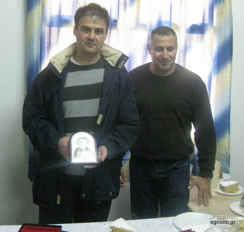 Το "κέρδος" του ήταν μία ασημένια εικόνα της Παναγίας, την οποία παρέλαβε από τον πρόεδρο του Σωματείου Ζήση Μανούσο. Ωστόσο ο μεγάλος τυχερός της εκδήλωσης ήταν ο εξωτερικός φρουρός Γιώργος Κοντοβάς, ο οποίος κέρδισε μία χρυσή λίρα, που αντιστοιχούσε στο φλουρί της πίτας των υπαλλήλων.