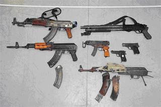 • Tρία πολεμικά τυφέκια, τύπου Kalashnikov (το ένα φέρει εμφανή σημάδια-φθορές από πυρκαγιά που έβαλε ο δράστης στο όχημα τύπου «κλούβα» που προσομοίαζε με ασθενοφόρο)