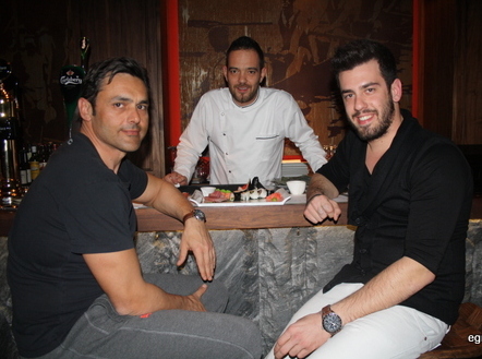 Στους φαν του shusi και ο δημοτικός σύμβουλος Γιάννης Μπάκας (στη φωτό μαζί με το σεφ Δημήτρη Νίκολη και τον Ακη Αζδέρη), ο οποίος μας δήλωσε ότι ήταν μια μοναδική ευκαιρία στη Χαλκίδα για να απολαύσει εκλεκτά shasimi, από την ποικιλία για δύο άτομα που ενώνει την παρέα. Κι αν απορείτε γιατί ο σεφ είναι εκτός κουζίνας, να σημειώσουμε ότι έφτιαχνε εκείνη τη στιγμή τις παραγγελίες μπροστά στα μάτια σου!