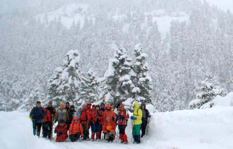 Στη φωτογραφία μία ομάδα των Χαλκιδέων ορειβατών μέσα στο υπέροχο χιονισμένο τοπίο.