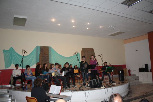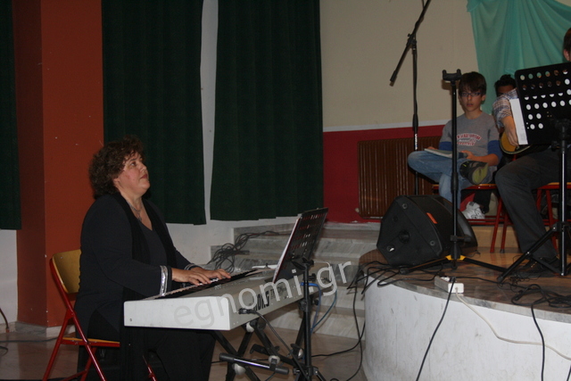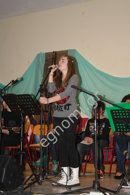 Με τον κιθαρίστα Άκη Πικριδά και τους Τάσο Καλαμπαλίκη και Δημήτρη Ταυταρίδη στο μπουζούκι να δίνουν ρυθμό, οι μαθητές τραγούδησαν τραγούδια μιας άλλης εποχής που παραμένουν αναλλοίωτα στο χρόνο. Η εκδήλωση ξεκίνησε με σόλο της Δέσποινας Σταμέλου (φωτό κάτω) που είπε το «Χάρτινο το φεγγαράκι» και συνεχίστηκε με όμορφα ντουέτα και σόλο.