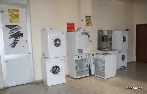 Σίγουρα δεν είναι και ...απολύτως συμβατή με εκπαιδευτικό ίδρυμα η συγκεκριμένη εικόνα με τα πλυντήρια, που αντικρίσαμε στο ισόγειο της φοιτητικής εστίας στο ΤΕΙ Ψαχνών.