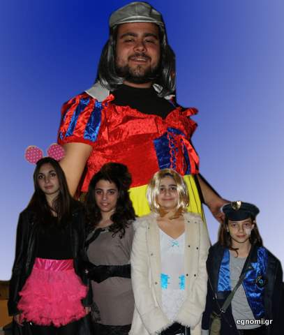 Λίγα μέτρα πιο κάτω μια παρέα τεσσάρων κοριτσιών μόλις είχε βγει απο αποκριάτικο πάρτυ που διοργανώθηκε σε γνωστό ξενοδοχείο. Από αριστερά η Βαγγελίτσα Γουρνή ως άλλη Μίνι Μάους, δίπλα της η Βιβή Μεϊντάνη και ακολουθούν η Ραφαέλα Κουρνή (ξανθιά Αλίκη) και η Αστυνομικίνα Αγγελική Μεϊντάνη.