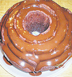Ζεσταίνω την κρέμα και πριν έρθει σε βρασμό προσθέτω την κουβερτούρα, αποσύρω και ανακατεύω μέχρι να λιώσει η σοκολάτα. Μόλις κρυώσει ελαφρά το κέικ το ξεφορμάρω και το περιχύνω με την κρύα επικάλυψη.