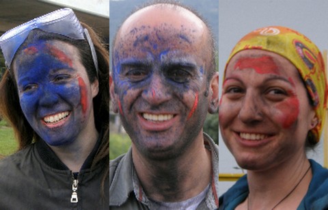 Το μεσημέρι πήγαν στο Γαλαξείδι όπου συμμετείχαν στα "αλευρομουτζουρώματα". Μερικοί θαραλέοι, αφού φόρεσαν ειδική στολή, μπήκαν στην "μάχη"και τα αποτελέσματα φαίνονται στις φωτογραφίες.