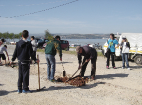 Φυτεύτηκαν κατάλληλα κωνοφόρα δενδρύλλια ενώ η Διεύθυνση Γεωτεχνικών Υπηρεσιών εγκατέστησε και σύστημα αυτόματης άρδευσης για την υποστήριξη και ανάπτυξή τους.Στις φωτογραφίες στιγμιότυπα από την δενδροφύτευση.