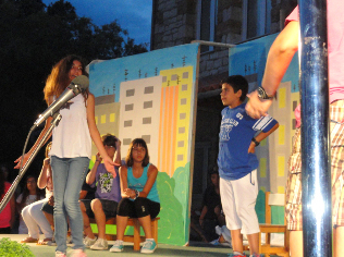 Τα παιδιά παρουσίασαν, σε διασκευή της δασκάλας της ΣΤ2 τάξης Βάσως Φώτου, το έργο του Αντώνη Δελώνη «Ας παίξουμε τους μεγάλους» . Παρά τα παιχνίδια του καιρού και τα απειλητικά σύννεφα , η γιορτή έφτασε στο τέλος και τότε άνοιξαν οι …καταρράκτες του ουρανού.