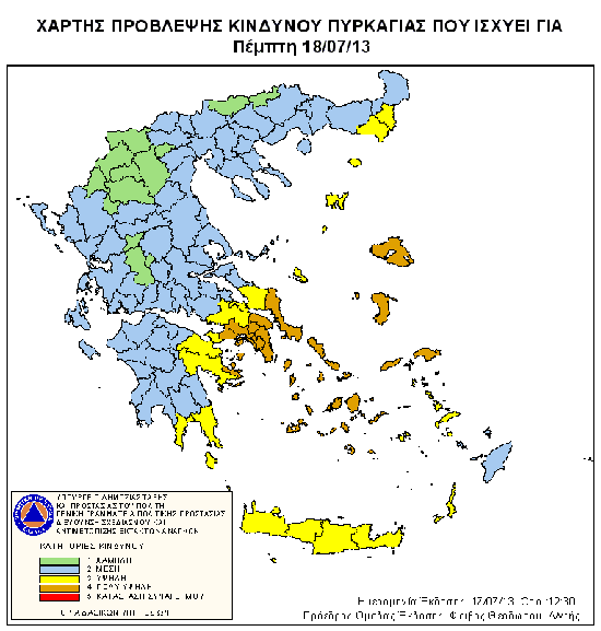 . Aυτό δείχνει ο χάρτης πρόβλεψης κινδύνου της Γενικής Γραμματείας Πολιτικής Προστασίας.