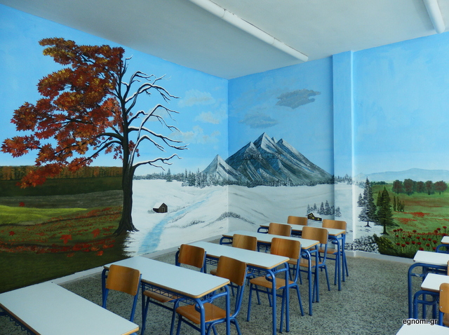 Μαζί με τους συναδέλφους της, Χρήστο Πάππο και Φεβρωνία Ράλλη, μετέτρεψαν τις σχολικές τάξεις σε... παράδεισο! Σε συνεργασία με ομάδα μαθητών τους έβαψαν τις τάξεις και το αποτέλεσμα είναι πέρα για πέρα εντυπωσιακό.