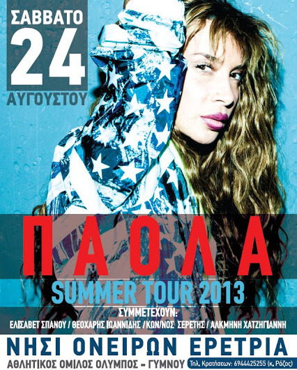 Η δημοφιλής τραγουδίστρια Πάολα τραγουδάει στο νησί των ονείρων, στην Ερέτρια, το Σάββατο 24 Αυγούστου και αναμένεται κοσμοσυρροή, αφού έχουν προπωληθεί ήδη πάνω από 1000 εισιτήρια.