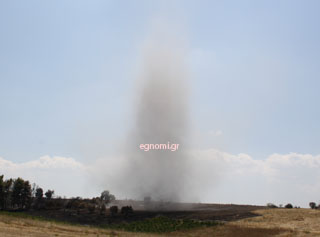 Είναι ένα συνηθισμένο καιρικό φαινόμενο, που τώρα γίνεται ορατό, γιατί ο άνεμος που στροβιλίζεται συμπαρασύρει στάχτες από το έδαφος, όπως βλέπετε και στην εικόνα που κατέγραψε ο φακός του egnomi.gr.