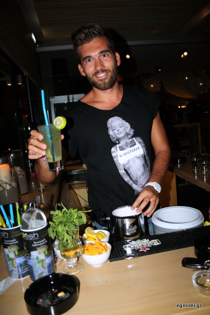 Στο ενσταντανέ ο Νίκος με «αφοπλιστικό» χαμόγελο μας κερνάει ένα δροσερό κοκτέιλ μοχίτο. Αντε λοιπόν, στην υγειά μας, στα ωραία πρόσωπά μας και στα σεξουαλικά κορμιά μας.