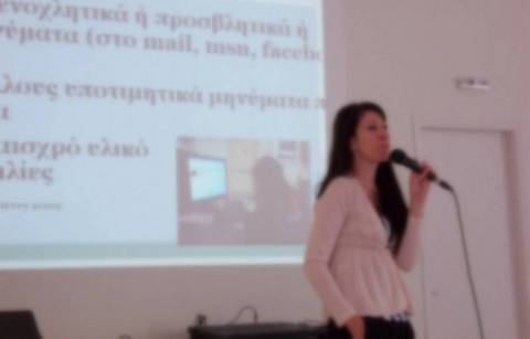 Η εκδήλωση πραγματοποιήθηκε την Τρίτη 8 Οκτωβρίου και η κ. Δημητρακοπούλου αναφέρθηκε σε κινδύνους όπως είναι η εξάρτηση από το Διαδίκτυο, η κλοπή προσωπικών δεδομένων, η βία και ο εκφοβισμός.
