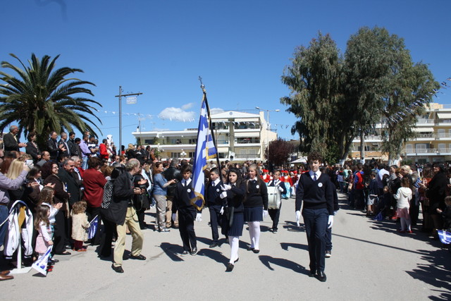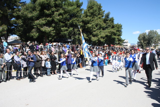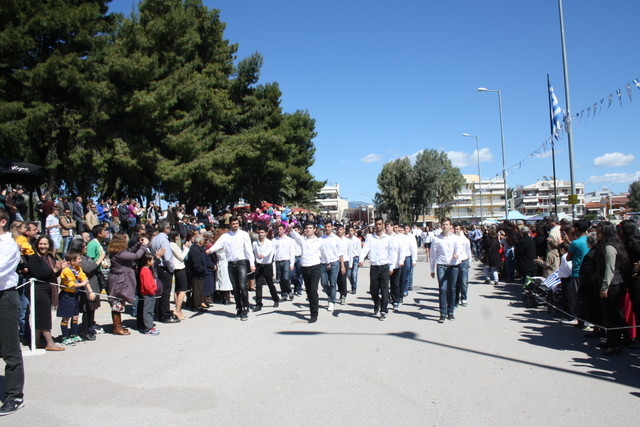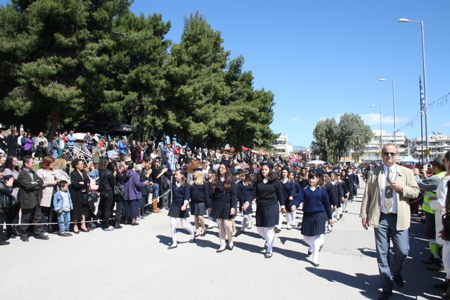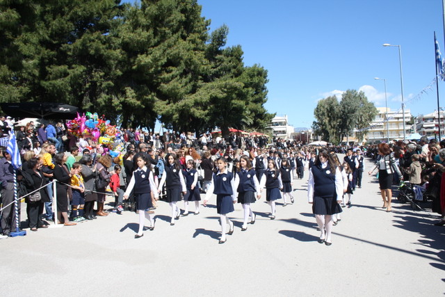 Δίπλα στο κύμα και κάτω από τον καυτό ήλιο, οι μαθητές παρέλασαν και καταχειροκροτήθηκαν από τον κόσμο που βούλιαξε την παραλία και απόλαυσε το όμορφο πρωινό.