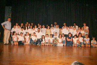όλων των τάξεων υπο την επίβλεψη του δασκάλου τους Δ. Ελευθερίου. Στη φωτογραφία τα παιδιά του σχολείου με τον διευθυντή κ. Καρατσόλια, τον πρόεδρο του συλλόγου Γονέων κ. Νέζη, τον δάσκαλο χορού κ. Ελευθερίου και τους εκπαιδευτικούς.