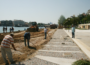 Στη φωτογραφία ο Δήμαρχος επιθεωρεί τις εργασίες.