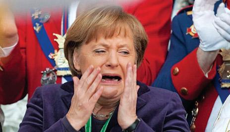 Πηγαίνει η Μέρκελ σε κατάστημα ηλεκτρικών στο Βερολίνο.