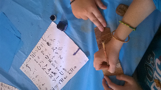 Το εργαστήρι αυτό κατάφερε να ταξιδέψει τα παιδιά πίσω στο χρόνο και να ανακαλύψουν την ιστορία της γραφής, ξεκινώντας από τις σπηλαιογραφίες.