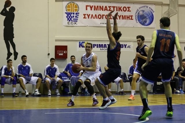 Επέστρεψε στις νίκες η ομάδα της Κύμης μετά την ήττα της στο Μαρούσι και συνεχίζει να οδηγεί την κούρσα της ανόδου στον 1ο όμιλο της Β' Εθνικής μπάσκετ.