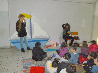 Στο τέλος με τα τριγωνάκια τους τραγούδησαν κάλαντα "πειρατικά"! Ήταν μια ιδέα της ομάδας φιλαναγνωσίας του Συλλόγου Δασκάλων και Νηπιαγωγών Χαλκίδας , ο οποίος φιλοξενείται σε μια αίθουσα του 6ου Δημοτικού.