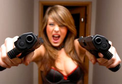 Μια κυρία μπαίνει σε ένα κατάστημα όπλων.