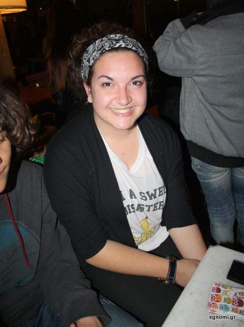 «Σπυράκια» βγάζει η Ελενα Μπουλή μαθήτρια του 4ου Λυκείου Χαλκίδας όταν ακούει ελληνικά τραγούδια και κυρίως βαριά καψουροτράγουδα.