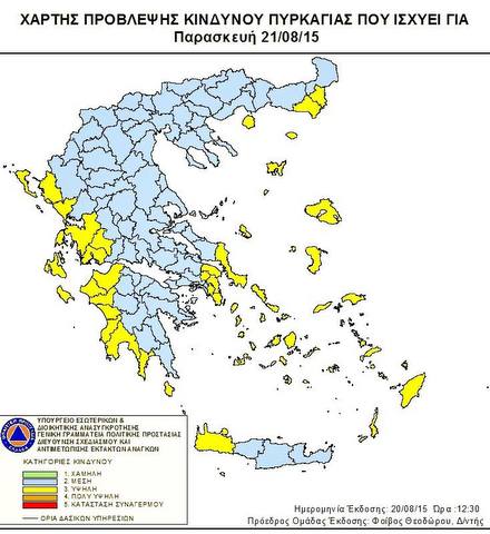Υψηλός είναι ο κίνδυνος για πρόκληση πυρκαγιάς στη Νότιο Εύβοια σήμερα Παρασκευή 21 Αυγούστου, σύμφωνα με τον Χάρτη πρόβλεψης κινδύνου πυρκαγιάς, που εκδόθηκε από την Γενική Γραμματεία Πολιτικής Προστασίας.