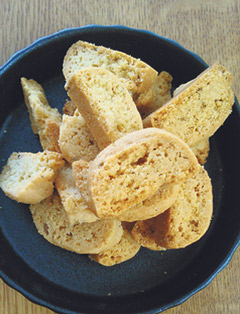 Απλώνω το σουσάμι σε ταψί και το ζεσταίνω για 10 λεπτά σε προθερμασμένο φούρνο στους 160 βαθμούς. Ανακατεύω όλα τα υλικά εκτός από το αλεύρι και χτυπώ μέχρι να λιώσει η ζάχαρη. Κοσκινίζω από πάνω το αλεύρι. Ανακατεύω μέχρι να πάρω μια μαλακιά ζύμη, που να πλάθετε όμως. Χωρίζω τη ζύμη σε 16 ίσα μέρη και πλάθω κάθε κομμάτι σε μακρόστενο ρολό. Τοποθετώ σε ταψιά στρωμένα με κόλλα ψησίματος. Χαράζω κάθε ρολό σε παξιμαδάκια χωρίς να κόψω τη ζύμη μέχρι κάτω. Ψήνω για 30 λεπτά σε προθερμασμένο φούρνο στους 180 βαθμούς. Βγάζω τα ρολά και τα χωρίζω εντελώς, με μαχαίρι του ψωμιού σε παξιμαδάκια. Τα τοποθετώ στα ταψιά και τα αφήνω στους 120 βαθμούς μισή ώρα ακόμη να φρυγούν.
