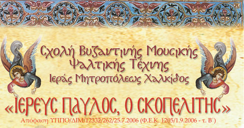Αρχίζουν οι εγγραφές των μαθητών στην Σχολή Βυζαντινής Μουσικής της Ιερής Μητρόπολης Χαλκίδας "Ιερεύς Παύλος Σκοπελίτης", η οποία είναι αναγνωρισμένη επισήμως από το Υπουργείο Πολιτισμού και εντεταγμένη στα Μουσικά Εκπαιδευτήρια της χώρας.