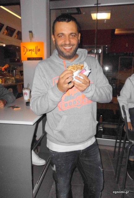 Λίγο πριν δαγκώσει την κρέπα που κρατάει στα χέρια του ο Πόλυ Δημητρίκας χάρισε ένα χαμόγελό του στο φακό του egnomi.