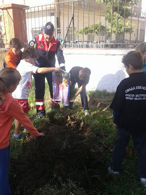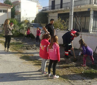 Μικρά παιδάκια με την καθοδήγηση των μεγάλων και των εθελοντών φόρεσαν γάντια και φύτεψαν δεντράκια, που ήταν προσφορά φυτωρίων της περιοχής. Ομόρφυναν το χώρο που περνούν μεγάλο μέρος της καθημερινότητάς τους και έστειλαν μήνυμα για ένα καλύτερο και καθαρότερο περιβάλλον.