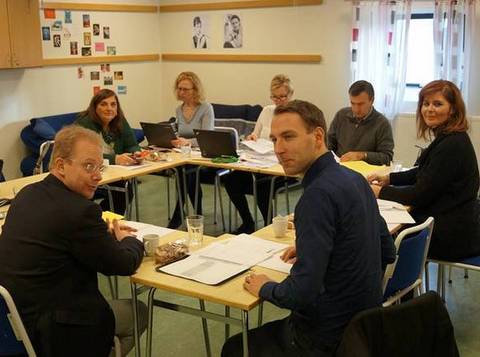 Στη φωτογραφία πάνω, στην άκρη δεξιά διακρίνεται η υπεύθυνη σχεδιασμού και υλοποίησης του προγράμματος (project leader) του Γυμνασίου Ερέτριας Θεοδώρα Λυμπέρη κατά την πρώτη ημέρα εργασιών στο Gardaskoli, το συνεργαζόμενο σχολείο της Ισλανδίας, μαζί με τους εταίρους από τα συνεργαζόμενα σχολεία.