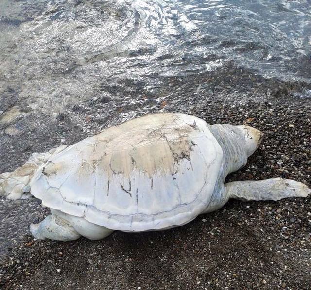 Δεύτερη μεγάλη θαλάσσια χελώνα ξεβράστηκε νεκρή σε παραλία της Αμαρύνθου μέσα σε διάστημα δύο εβδομάδες. Την έβγαλε το κύμα στην πλαζ κάτω από την καφετέρια «In&Out» (φωτό).