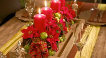 Ενα βάζο που αντί για λουλούδια μπορούμε να το γεμίσουμε με καρύδια ή μπάλες χριστουγεννιάτικες όπου μέσα θα βάλουμε ένα κερί σε λευκό χρώμα είναι μια όμορφη ιδέα για το κέντρο του τραπεζιού. Μια άλλη ιδέα είναι να φτιάξουμε μια μικρή σύνθεση με κόκκινα κεριά και αλεξαντρινό που ως γνωστό είναι το λουλούδι των Χριστουγέννων.