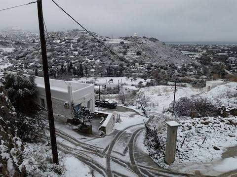 Έπεσε χιόνι και στο νησί. Δείτε φωτογραφίες της Τρίτης 19 Ιανουαρίου.