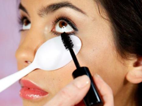 Αν δεν πετυχαίνετε με τίποτα την τέλεια γραμμή των ματιών με το eye liner τότε τοποθετήστε το κουτάλι σας με το εσωτερικό του κάτω από τα μάτια στην άκρη του ματιού και απλώστε τη μάσκαρα. Όσο πιο ίσιο μπορείτε να κρατήσετε το κουτάλι τόσο το καλύτερο γιατί θα το χρησιμοποιήσετε για να κάνετε την γραμμή προς τα έξω αλλά και να απλώσετε τη μάσκαρα χωρίς να μουντζουρωθείτε. Για ένα ακόμη πιο έντονο αποτέλεσμα απλώστε χρώμα και στις κάτω βλεφαρίδες.