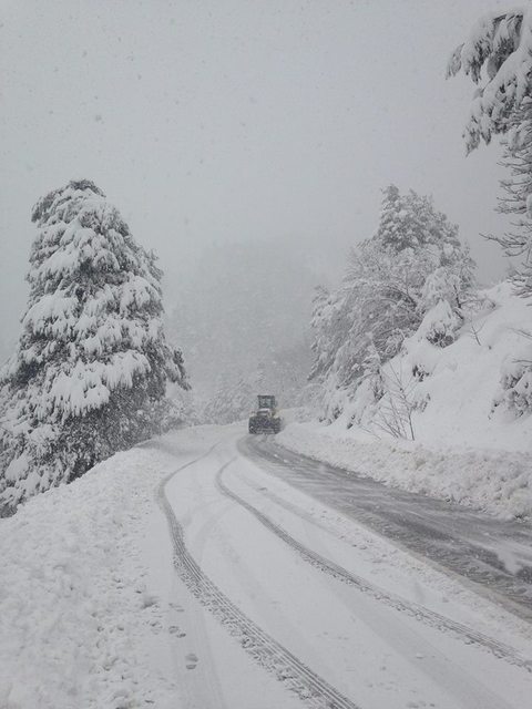 Μηχανήματα της Περιφέρειας και των δήμων δίνουν μάχη για να μείνουν οι δρόμοι ανοιχτοί.